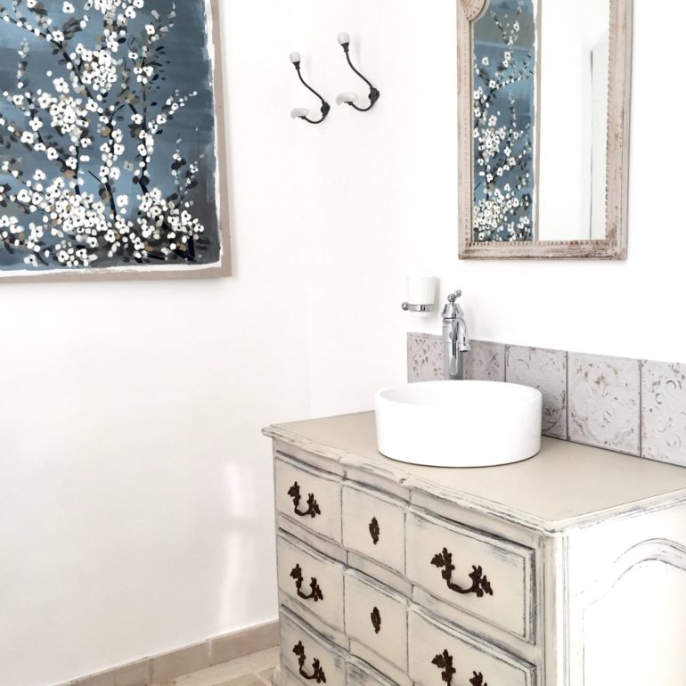 Cette suite peut être proposée avec ou sans petit déjeuner, car elle dispose d’un petit espace cuisine en béton ciré décoré dans un esprit charme…